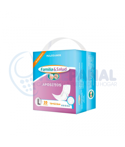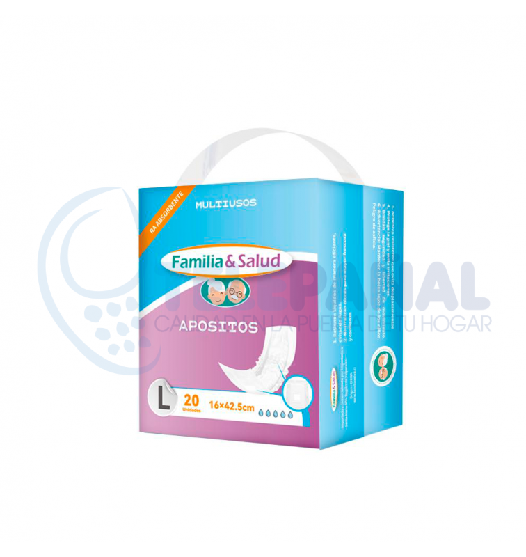 Los apósitos Familia & Salud son absorbentes diseñados para ña protección contra la incontinencia leve, son multiuso, adaptándose a la ropa interior y proporcionando comodidad y seguridad para diferentes tipos de usuarios, incluyendo adultos mayores y personas con movilidad reducida.